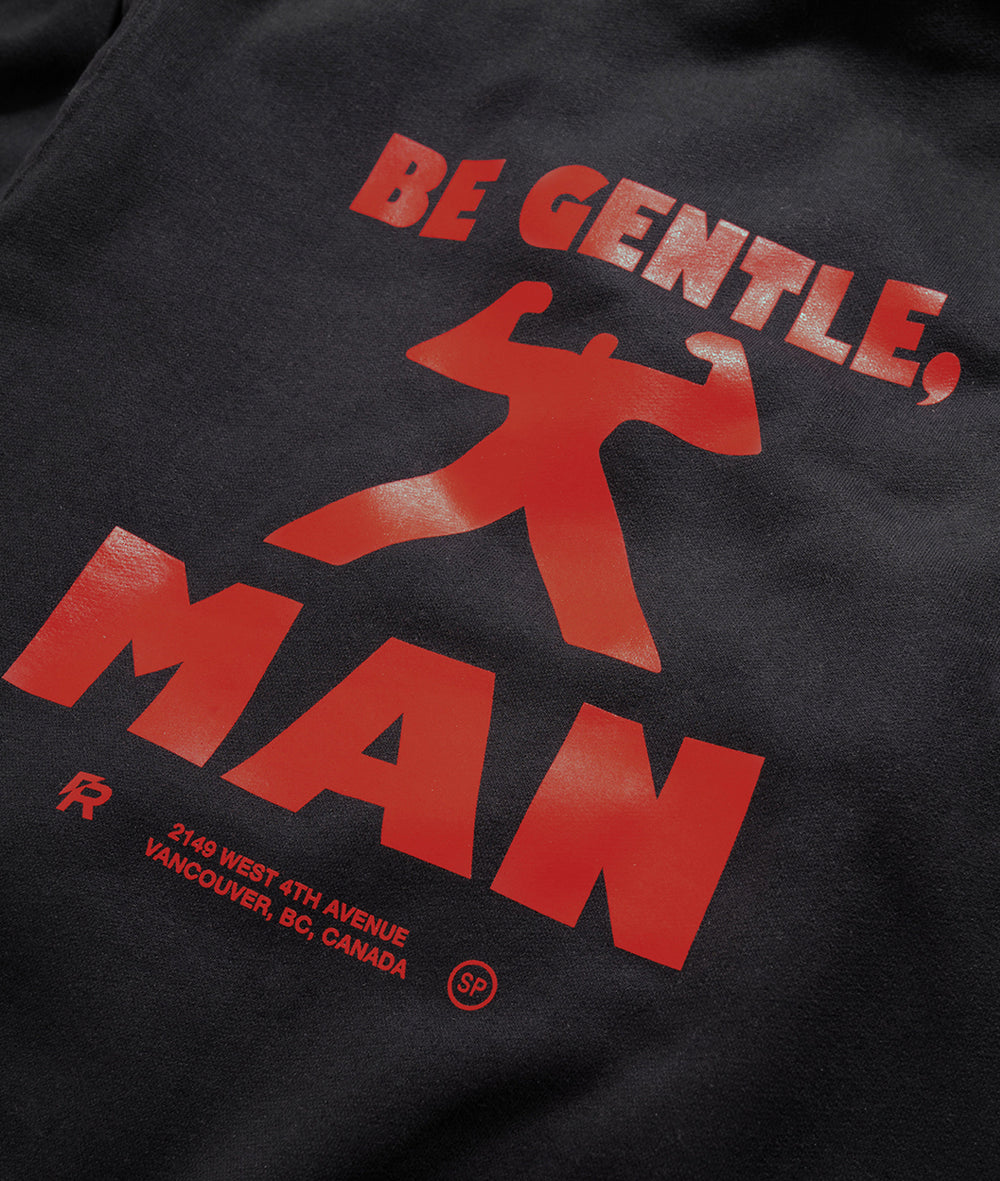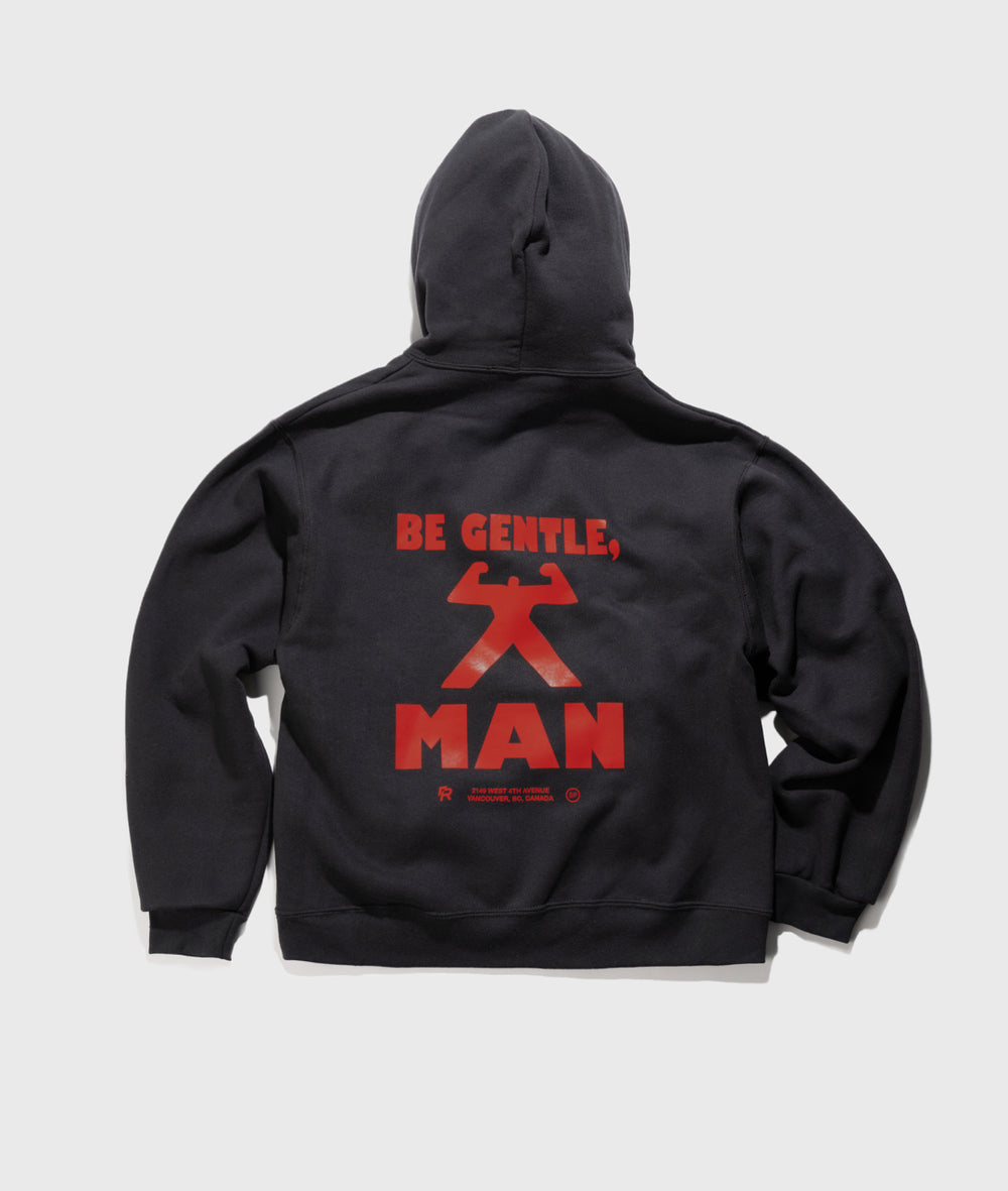 The classic REYAL Be Gentle, Man Hoodie in black with core red graphic. A pre-pump staple for you to wear to and from the gym.